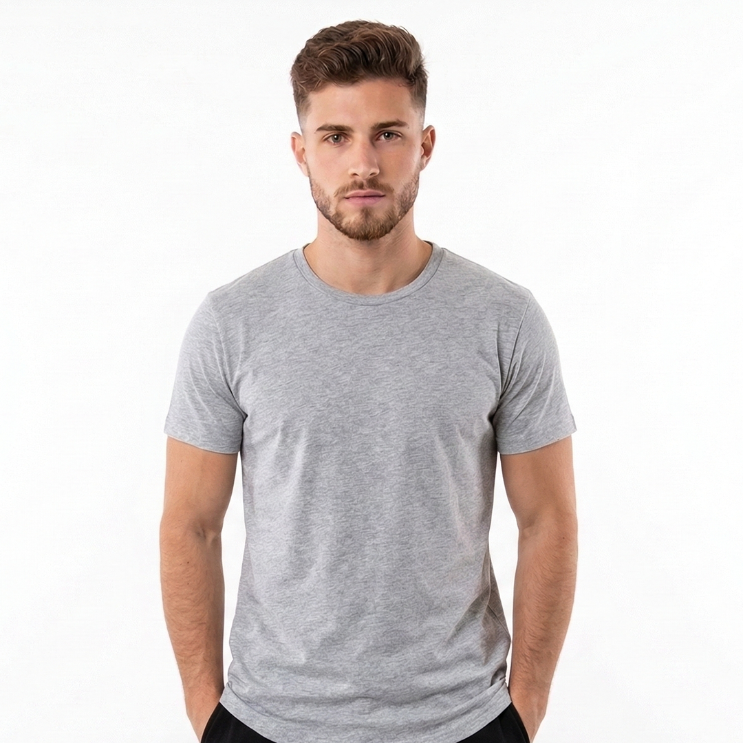No hay prenda más necesaria en el guardarropa masculino que una buena remera gris, pero este modelo va un paso más allá. Confeccionada en algodón puro, te garantiza frescura, suavidad y resistencia para el uso diario. El tono gris claro (melange) es el comodín definitivo que combina absolutamente con todo.