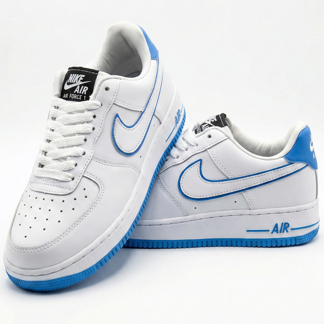 Estas Zapatillas Nike Air Force 1 en talle 41 renuevan el modelo más icónico de la marca con una combinación fresca y moderna. Mantienen la base blanca impoluta que todos aman, pero incorporan detalles en azul eléctrico que marcan la diferencia: el contorno del Swoosh (pipa), la suela externa y las letras “AIR” en la entresuela.